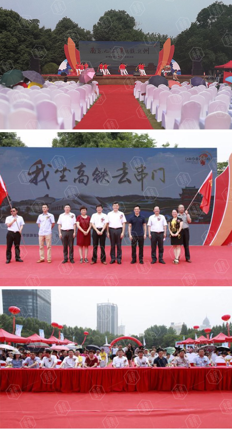 6月26日上午,杏花公園群眾廣場彩旗飄揚,人頭攢動,由江西省旅游委員會、南昌市人民政府主辦,南昌、九江、景德鎮、撫州市旅游委員會協辦的“坐著高鐵去串門”旅游聯合營銷熱烈進行。南昌市人民政府副市長凌衛、副秘書長萬里菲,南昌市旅游委主任陳清華,合肥市人民政府副秘書長謝軍,合肥市旅游局局長完顏紹建等領導出席活動。
